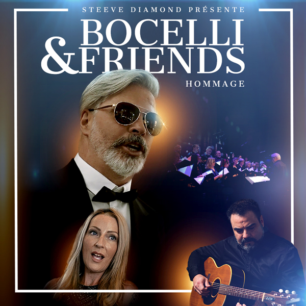 Après une tournée en Europe avec les 4 SANS VOIX, Steeve Diamond est de retour sur scène avec un nouveau spectacle. Inspiré du succès des 3 TÉNORS DE L’HUMOUR, il vous présente BOCELLI & FRIENDS. Un spectacle unique en son genre, qui allie chansons, humour et imitations. Imaginez nos plus grands chanteurs québécois accompagnés du grand ténor italien Andrea Bocelli, interpréter ORDINAIRE de Robert Charlebois.