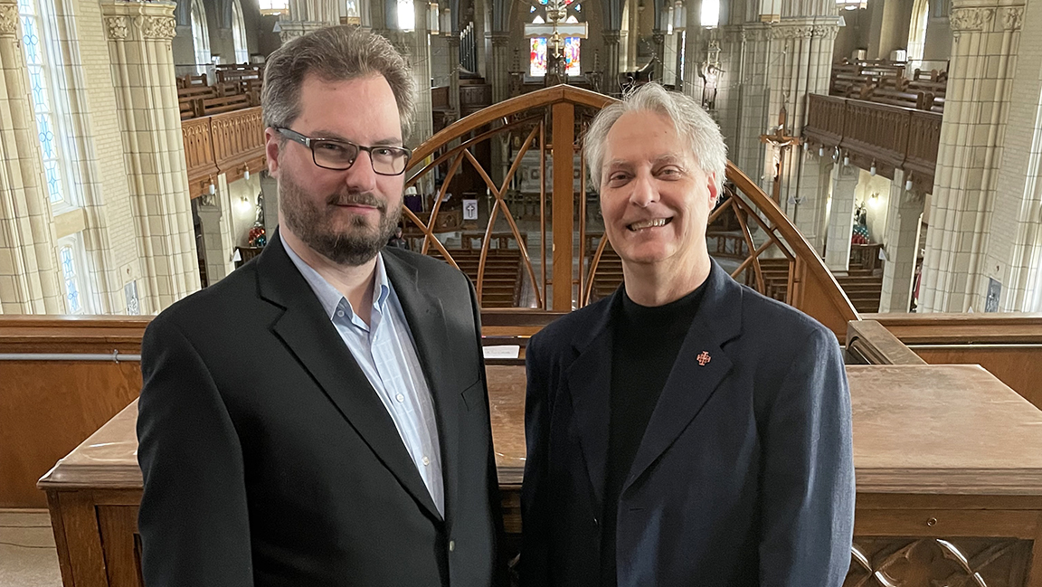 Francis et Nicolas Gagnon, père et fils, sont respectivement organiste titulaire et chef de chœur à la basilique Saint- Frédéric de Drummondville. |