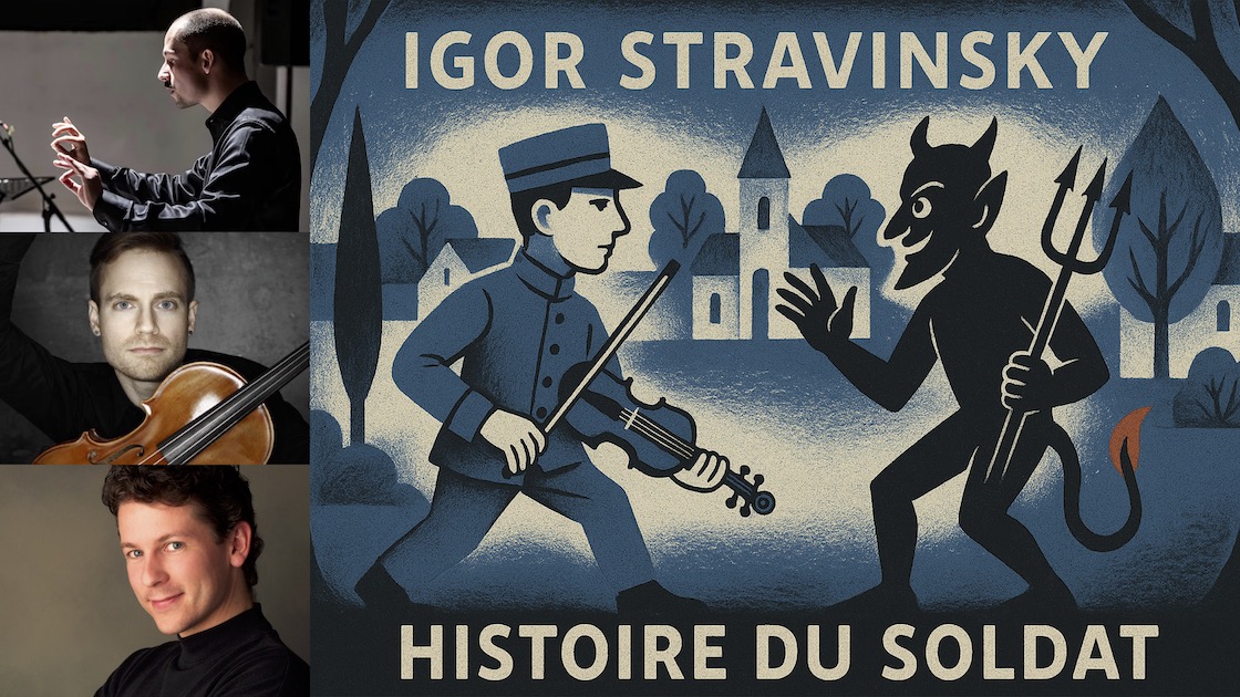 Stravinsky’s 1918 masterpiece The Soldier’s Tale, tells the story of a soldier who trades his violin to the devil for a magic book, weaving together music, dance, and narrative in Stravinsky’s distinctive neo-classical style. Following a week-long exploration of this work through puppet theatre by Music Retreat participants (August 3-9, 2025), the Musical Sundays Concert Series will present The Soldier’s Tale in its pure concert form, featuring a trio of award-winning musicians – Marc Djokic on violin, Simon Aldrich on clarinet, and Maxim Shatalkin on piano – with narration by award-winning playwright and director Peter Duschenes.